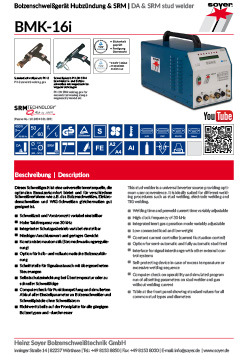 BMK-16i je multifunkčný invertorový zvárací zdroj na priváranie svorníkov metódou zdvihového privárania, ako aj privárania svorníkov v rotujúcom magnetickom poli (SRM). BMK-16i je určený na priváranie svorníkov v rozsahu M3 – M16. Zariadenie umožňuje aj oblúkové zváranie metódami MMA a TIG.