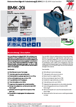 BMK-20i je trojfázovo napájaný kompaktný invertorový zvárací zdroj, ktorý umožňuje priváranie svorníkov v magnetickom poli s využitím technológie SRM. Jeho výhodou je vynikajúci pomer cena – výkon a možnosť použitia pre mobilné aplikácie vďaka jeho malým rozmerom a malej hmotnosti .