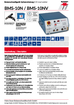 Zváracie zdroje BMS-10N a BMS-10NV je možné použiť tak pre manuálne, ako aj pre mechanizované priváranie svorníkov. Bez problémov je k nim možné pripojiť zváraciu pištoľ alebo zváraciu hlavu, a využiť manuálne či automatické podávanie svorníkov. Tento typový rad zváracích zdrojov umožňuje priváranie svorníkov v rozsahu M3 – M12.