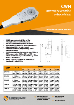 CWH 76 je praktická vodou chladená uzatvorená orbitálna zváracia hlava. Je vybavená unikátnym upínacím systémom, ktorý uľahčuje prácu. Vyznačuje sa extrémne úzkym profilom so šírkou iba 38 mm.