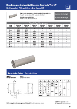 Svorníky – kolíky pre kapacitné priváranie, typ UT – hliníkové