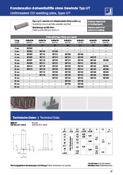 Svorníky – kolíky pre kapacitné priváranie, typ UT – nerezové