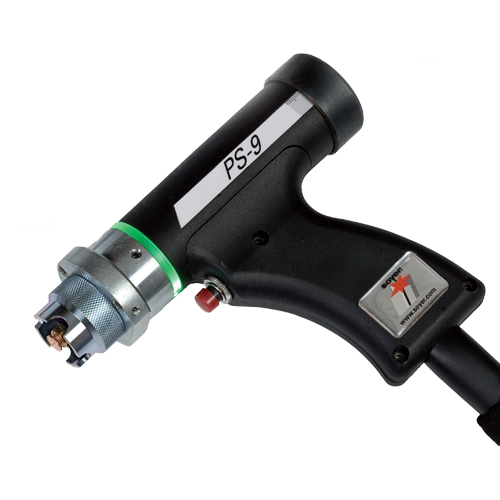 Zváracie pištole PS-9 sú primárne určené pre použitie so zváracími zdrojmi BMS-9. Sú vybavené signalizačným LED pásikom, ktorý indikuje pripravenosť zariadenia previesť dokonalý zvar. Zvárací rozsah M3-M8.